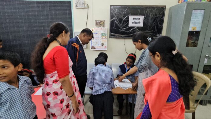 भोसरीतील वैष्णोमाता, इंद्रायणीनगर शाळेत यशस्वी डिजिटल मतदान प्रक्रिया संपन्न