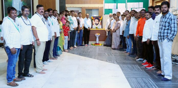महानगरपालिकेच्या मुख्य प्रशासकीय इमारतीमधील शंकर आण्णा गावडे यांच्या प्रतिमेस उप आयुक्त अण्णा बोदडे यांनी पुष्पहार अर्पण करून अभिवादन केले.