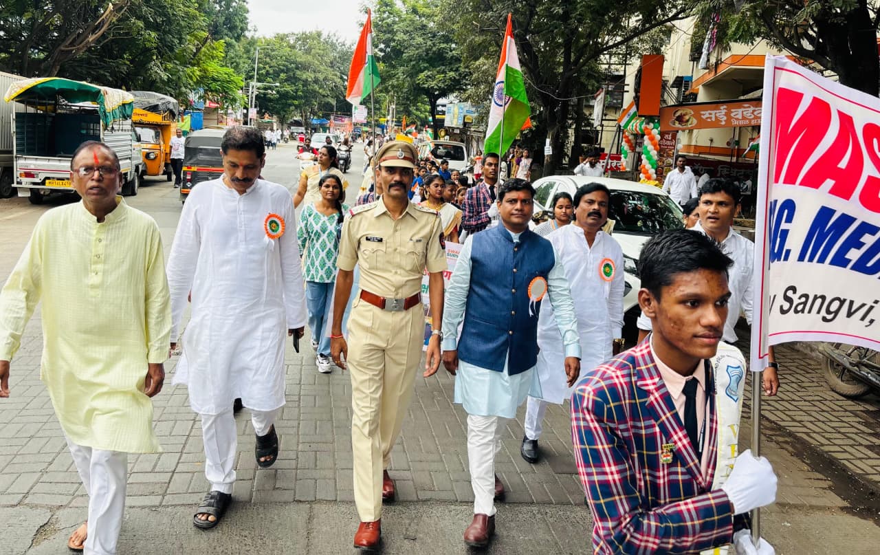 ही रॅली कृष्णा चौक – क्रांती चौक – फेमस चौक ते साई चौकाडून पुन्हा शाळेत अशी “भारत माता की जय” “वंदे मातरम् ” या घोषणा देऊन व विद्यार्थ्यांनी संचलन केले.तेव्हा रॅलीमधे सांगवी पोलीस ठाण्यातील गुन्हे शाखेचे पोलीस निरीक्षक अमोल नांदेकर यांनीही सहभाग घेतला आशा अतिशय नेत्रदिपक आणि दिमाखदार अशा कार्यक्रमाला प्रमुख पाहुणे संजय गांधी निराधार योजनेचे संजय मराठे,सामाजिक कार्यकर्ते प्रशांत कडलग,सुनिल बिरारी,सखाराम रेडेकर,तौफिक सय्यद,रमेश चौधरी,साई कोंढरे,रमेश गाढवे या मान्यवरांची उपस्थिती लाभली.