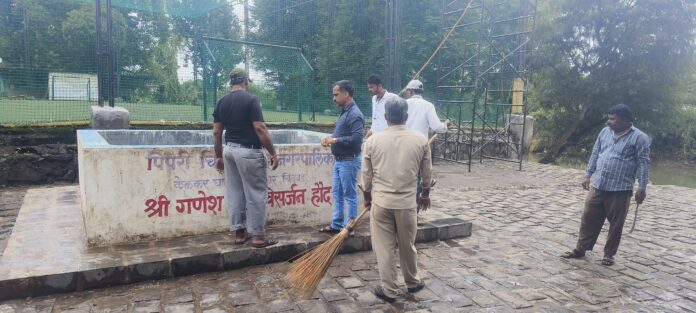गौरी- गणपती चे आगमन होणार आहे, या पार्श्ववभूमीवर महावितरण समिती सदस्य मधुकर बच्चे यांनी दरवर्षीप्रमाणे या वर्षी देखील गणेश विसर्जन घाटाची पाहणी केली.