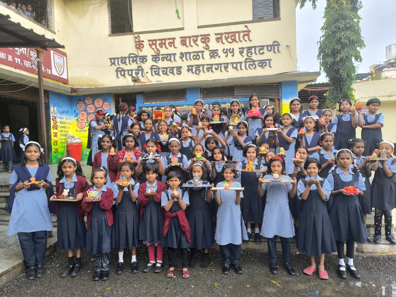 महानगरपालिकेच्या शाळेतील लहान लहान विद्यार्थ्यांच्या हातून घडले पर्यावरणपूरक गणपती बाप्पा