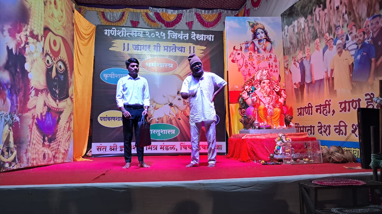 यंदा ६४ व्या वर्षात पदार्पण करीत असलेल्या गांधीपेठ, चिंचवडगाव येथील श्री संत ज्ञानेश्वर मित्रमंडळचा ‘चिंचवडचा राजा’ यांनी गोरक्षा संवर्धन आणि संरक्षणाचा अतिशय प्रभावी संदेश देणारा ‘जागर गोमातेचा’ हा जिवंत देखावा साकारला आहे. शाहीर आसराम कसबे यांचे लेखन आणि दिग्दर्शन असलेल्या या जिवंत देखाव्यात गणेश कांबळे, शिवाजी पोळ, सार्थक कसबे, लखन जगताप, विशाल भवारी आणि स्वतः आसराम कसबे हे कलावंत हृदयाला भिडणारे संवाद व संगीतमय गीतांमधून गाईचे सर्वतोपरी महत्त्व सांगत आहेत. याबाबत अधिक माहिती देताना मंडळाचे कार्याध्यक्ष महेश मिरजकर यांनी सांगितले की, ‘आपल्या भारतीय संस्कृतीत गाय ही केवळ पशू नसून तिला आईचा दर्जा दिला आहे. देशी गाईचे दूध हे आईच्या दुधाइतकेच मानवी शरीराला पोषक आहे म्हणूनच गाईला गोमाता म्हटले जाते. देशी गायींचे संगोपन, संरक्षण आणि संवर्धन व्हावे या दृष्टिकोनातून मंडळाच्या सर्व कार्यकर्त्यांनी या देखाव्याची संकल्पना मांडली व लेखक, दिग्दर्शक आसराम कसबे आणि त्यांचे सहकारी कलावंत प्रभावीपणे त्याचे सादरीकरण करत आहेत. देखव्याला उत्स्फूर्त असा प्रतिसाद मिळत असून दररोज रात्री साडेसात ते दहा या वेळेत हा देखावा सादर केला जात आहे आहे.