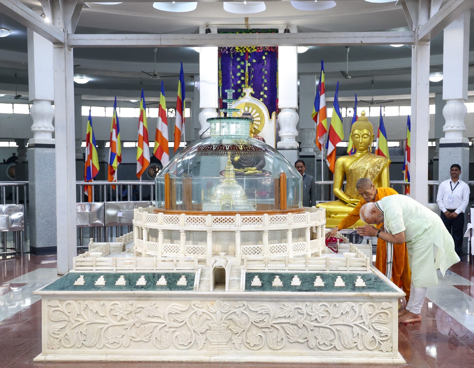 पंतप्रधान मोदी यांनी दीक्षाभूमी येथे डॉ. बाबासाहेब आंबेडकर यांच्या अस्थीकलशाला अभिवादन केले. तथागत गौतम बुद्ध यांच्या प्रतिमेला अभिवादन करून बुद्धवंदना दिली.