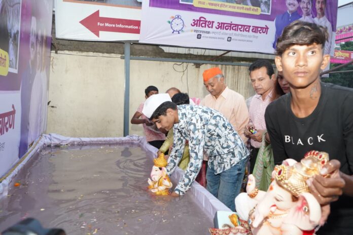 गणेशोत्सवा मुळे सगळीकडे उत्साहाचे वातावरण आहे. अनेक सामाजिक उपक्रमातून गणेशोत्सव साजरा होत आहे. अनेक गणेश मंडळे आकर्षक देखावे सादर करत आहे. या गणेशोत्सवाच्या निमित्ताने दरवर्षी प्रमाणे याही वर्षी राष्ट्रवादी काँग्रेस पक्षाचे पिंपरी चिंचवड शहर उपाध्यक्ष आतिश आनंदराव बारणे यांच्यावतीने गणेश विसर्जना करिता कृत्रिम तलावाचे आयोजन करण्यात आले आहे.