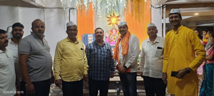 शबनम न्यूज , प्रतिनिधी : पिंपरी चिंचवड शहरातील मोशी परिसरात गणेशोत्सवानिमित्त अण्णासाहेब मगर सहकारी बँक भोसरीचे माजी चेअरमन प्राध्यापक राजेश सस्ते यांनी गणेश उत्सवाच्या आठव्या दिवशी अनेक गणेश मंडळांना भेटी दिल्या व गणरायाची आरती केली.गणेश उत्सवाच्या आठव्या दिवशी चऱ्होली परिसरात श्री गणेशाच्या आरतीचा प्राध्यापक राजेश सस्तेना देण्यात आला. श्री. दत्त नगर येथील प्रसिद्ध मंडळ शिव गर्जना मित्र मंडळ यांनी आरतीचा मन प्राध्यापक राजेश सस्ते यांचा शिव छत्रपतींची प्रतिमा देऊन सन्मान करण्यात आला तसेच परिसरातील सोसाट्यामध्ये आकार इंडिगो , सफारी .इ मध्ये गणरायाची आरतीचा प्राध्यापक राजेश सस्ते यांच्या हस्ते करण्यात आली.