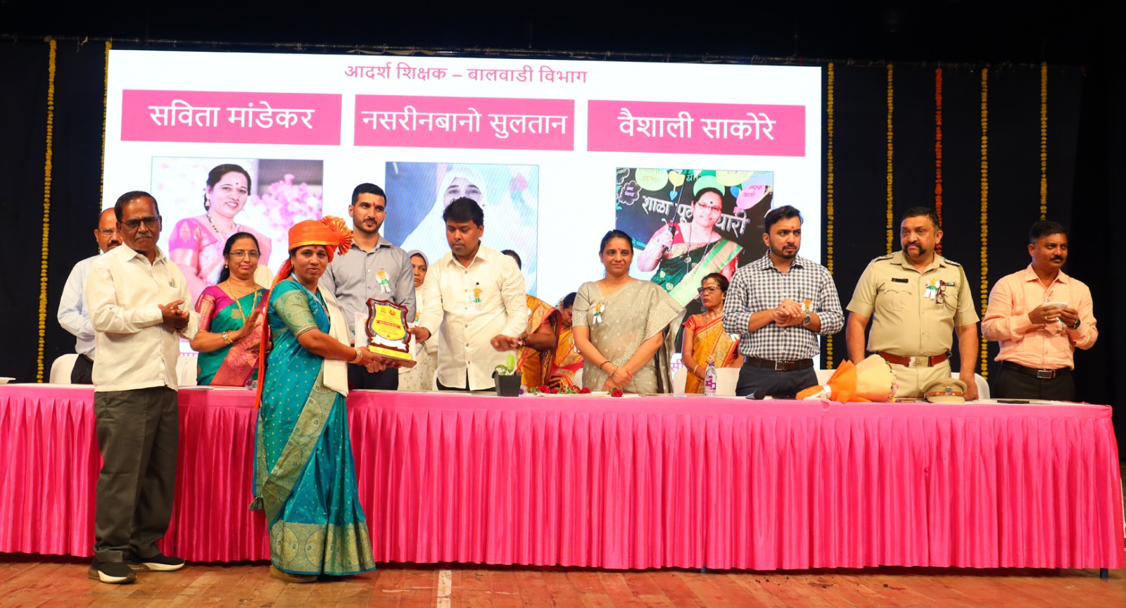 तर, थेरगाव येथील बालवाडी विभागातील यशवंतराव चव्हाण प्राथमिक शाळेच्या सविता मांडेकर, यशवंतराव चव्हाण उर्दू शाळा थेरगावच्या नसरीन बानो मोहम्मद सुलतान आणि सावित्रीबाई फुले शाळा मोशीच्या वैशाली साकोरे यांना आदर्श शिक्षक पुरस्कार मिळाला.