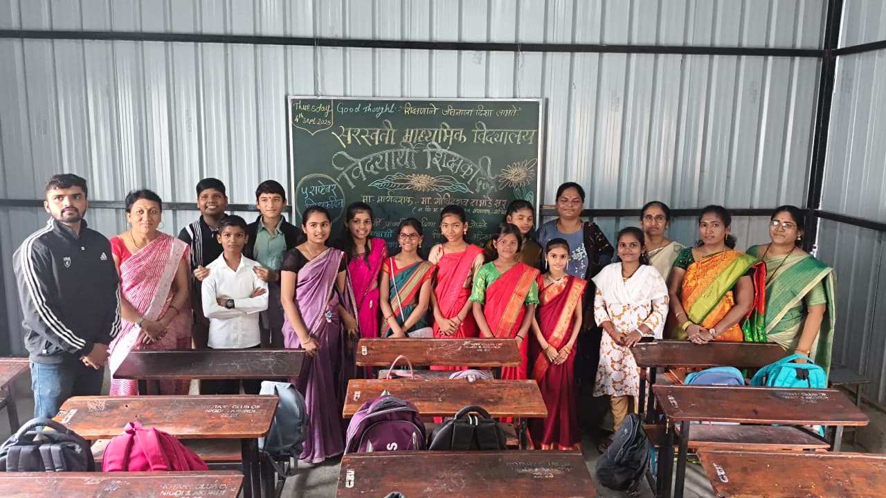 निगडी:५ सप्टेंबर,डॉ.सर्वपल्ली राधाकृष्णन यांचा जन्मदिवस सर्वत्र मोठ्या उत्साहात “शिक्षकदिन” म्हणून साजरा केला जातो.त्या दिवशी विद्यार्थी शिक्षक बनून सर्व इयत्तेतील विद्यार्थ्यांना अध्यापन करतात.खऱ्या अर्थाने विद्यार्थ्यांना अध्यापन व अध्ययन यातील फरक समजतो.शिक्षकांचे कष्ट,मेहनत,त्यांना कोणकोणत्या गोष्टींचा सामना करावा लागतो हे समजते.त्याच अनुषंगाने दरवर्षीप्रमाणे या ही वर्षी सरस्वती माध्यमिक विद्यालय,आकुर्डी पुणे ३५ शाळेत शिशुवर्ग ते ७ वी सकाळ विभागात मोठ्या उत्साहात विद्यार्थी शिक्षकदिन साजरा झाला.इयत्ता ७ वी अ मधील विद्यार्थ्यांनी प्राचार्या,उपप्राचार्य,मुख्याध्यापक,शिक्षक व शिपाई पद कारभार यशस्वीपणे सांभाळला.प्रत्येकाने त्यांची जबाबदारी मोठ्या आनंदात पार पाडली.एक दिवसाचे म्हणून शिक्षक झालेला त्यांच्या चेहऱ्यावरचा आनंद टिपप्यासारखा होता.यासाठी माननीय संस्थापक श्री.गोविंदराव दाभाडे सरांचे मोलाचे मार्गदर्शन लाभले.मुलांच्या वर्गशिक्षिका सौ.प्रतिमा काळे मॅडम यांनी संपूर्ण कार्यक्रमाचे नियोजन केले होते.विशेष सहकार्य श्री.अमोल गुंड,श्री.माळे सरांचे लाभले.तसेच शिशुवर्ग ते ७ वी पर्यंतच्या सर्व सहकारी शिक्षकांचे मोलाचे सहकार्य लाभले.सर्व विद्यार्थ्यांनी आपली सुंदर मनोगते व्यक्त केलीत.सौ.वैद्य,सौ.हराळे,सौ.नवले,सौ.पाटील नयना,सौ.प्रतिमा काळे,श्री.चव्हाण,श्री.अमोल गुंड,शिक्षकांनी त्यांना शुभेच्छा दिल्यात अन् त्यांच्या कार्याचे कौतुक ही केले.मुख्याध्यापिका:-१)दिव्या सूर्यकांत सोळंके,उपप्राचार्य:२)संस्कार बद्रिनाथ मेनकर,प्राथमिक मुख्याध्यापक:३)श्लोक बाळासाहेब गुंजाळ,४)अमोल गुंड सर:वर्षा अनिल राठोड,५वी ते ७ वी चे विद्यार्थी वर्गशिक्षक:सौ.पाटील मॅडम(६वी,ब):५)दिपल दिनेश पाटील,सौ.उभे मॅडम(६वी,अ): ६)मीरा मंगेश मगर,श्री.आखाडे सर(५ वी ड):७)वैभव योगेश नेटके,सौ.काळे मॅडम(७ वीअ):८)दिव्या सूर्यकांत सोळंके,श्री.कोशीरे सर( जादा शिक्षक):९)राजरत्न भानुदास कांबळे,सौ.जाधव मॅडम(५वी,क):१०)धनश्री विष्णु पाचारे,शिशूवर्ग:सौ.स्वाती जाधव:११) दिव्या गणेश भोसले,१२)खुशी निलेश जगताप,बालवर्ग:सौ.शांता हराळे :१३)प्रणाली रामहरी गोलेकर,१४)वैष्णवी विवेक नवगिरे,पहिली क: सौ.लता नवले: १५)प्रांजली लहू सावंत,जादा शिक्षक: