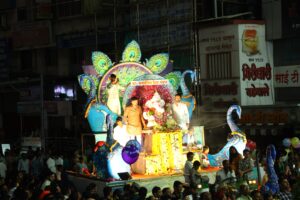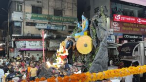 पारंपरिक वेशभुषेत कलाकारांनी सादर केलेला ढोल ताशांचा गजर… रांगोळीच्या पायघड्या…आणि फुलांची उधळण… अशा उत्साहपूर्ण वातावरणात पिंपरी चिंचवड येथे गणेश विसर्जन मिरवणूक शनिवारी (६ सप्टेंबर) पार पडली.
