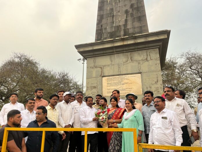 पुणे, दि. ३१ : नवनिर्वाचित विधानसभा उपाध्यक्ष अण्णा बनसोडे यांनी सोमवारी (ता. ३१) भीमा कोरेगाव येथील विजय स्मृतीस्तंभाला अभिवादन केले. सोबतच वढू बुद्रुक ( ता. शिरूर) येथील श्री छत्रपती संभाजी महाराज यांच्या समाधीचे, कवी कलश समाधी व गोविंद गोपाळ यांचे बनसोडे यांनी दर्शन घेतले. संभाजी महाराज यांची ३३६ वी पुण्यतिथी तीन दिवसांपूर्वी झाली. यावेळी उपमुख्यमंत्री अजित पवार व एकनाथ शिंदे यांनी दर्शन घेतले होते. सोमवारी अण्णा बनसोडे यांनी शंभूंच्या समाधीचे दर्शन घेत वढू बुद्रुक ग्रामपंचायतीचे पांडुरंग गायकवाड यांच्या घरी भेट दिली.