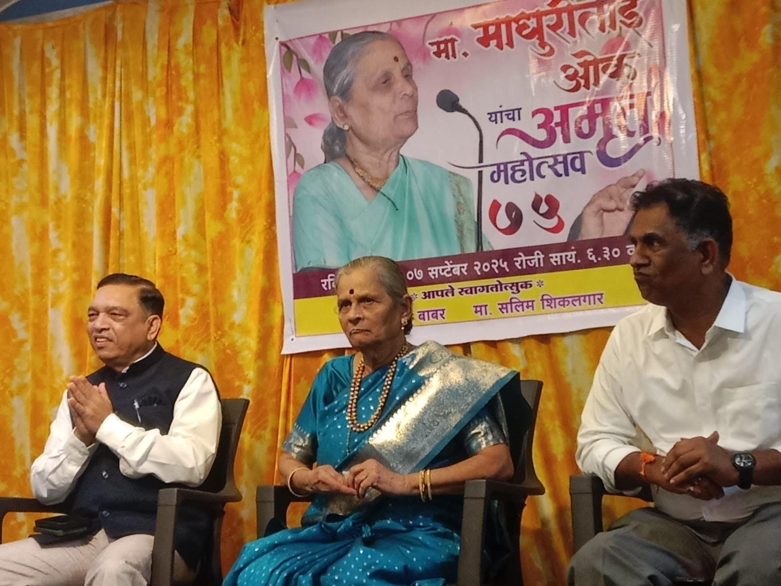पिंपरी (दिनांक : ०८ सप्टेंबर २०२५) ‘सुमारे पंचेचाळीस वर्षांपासून माधुरी ओक यांचे प्राधिकरणातील सांस्कृतिक आणि साहित्य क्षेत्रांत मौलिक योगदान आहे!’ असे गौरवोद्गार पिंपरी – चिंचवड भाजपा उपाध्यक्ष सलीम शिकलगार यांनी तारांगण सभागृह, पेठ क्रमांक २५, निगडी प्राधिकरण येथे रविवार, दिनांक ०७ सप्टेंबर २०२५ रोजी काढले. ज्येष्ठ साहित्यिक आणि रंगकर्मी माधुरी ओक यांचे अमृत महोत्सवी वर्षानिमित्त अभीष्टचिंतन आणि जाहीर सत्कार करताना पिंपरी – चिंचवड भाजपा उपाध्यक्ष सलीम शिकलगार बोलत होते. सामाजिक कार्यकर्ते राजेंद्र बाबर, आर. एस. कुमार, शैलेजा मोरे, शर्मिला बाबर, अतुल इनामदार, शर्मिला महाजन, साहित्यिक राज अहेरराव, प्रा. तुकाराम पाटील, रमेश वाकनीस, नंदकुमार मुरडे, राजेंद्र घावटे यांच्यासह सामाजिक, सांस्कृतिक आणि साहित्य क्षेत्रातील अनेक मान्यवरांची याप्रसंगी उपस्थिती होती. नवचैतन्य भजनी मंडळातील महिलांनी ७५ दिव्यांनी माधुरी ओक यांचे विधिवत औक्षण करून सोहळ्याचा प्रारंभ केला. मधुश्री कला आविष्कार या संस्थेची स्थापना करून माधुरी ओक यांनी प्राधिकरणात रुजवलेली नाट्य चळवळ, भजन स्पर्धा, व्याख्यानमाला, साहित्यविषयक उपक्रम याबाबत मान्यवरांनी उत्स्फूर्त मनोगतातून विविध आठवणींना उजाळा दिला. सत्काराला उत्तर देताना माधुरी ओक यांनी, ‘बालपणी वडिलांकडून साहित्याचा वारसा मिळाला. विवाहानंतर सर्व कुटुंबीयांनी सांस्कृतिक कार्यासाठी नेहमीच पाठिंबा दिला; तसेच अनेकांच्या सहकार्यातून संस्थात्मक कार्यात सातत्य राखणे शक्य झाले. यासाठी सर्वांप्रति कृतज्ञता व्यक्त करते!’ अशी भावना व्यक्त केली. सलीम शिकलगार आणि राजेंद्र बाबर यांनी कार्यक्रमाचे संयोजन केले. उज्ज्वला केळकर यांनी सूत्रसंचालन आणि आभार मानले.