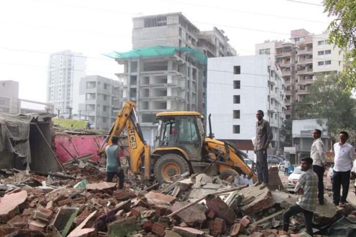 पिंपरी चिंचवड महापालिकेच्या झोपडपट्टी निर्मूलन व पुनर्वसन विभागाने विकास आराखड्यात आरक्षित असलेल्या १८ मीटर रस्त्यावरील ४३ झोपड्यांचे सुमारे ३८ हजार ७५० चौरस फुटांवरील बांधकाम निष्कासित केले.
