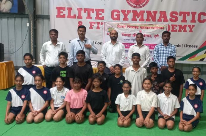 पिंपरी चिंचवड महानगरपालिका व पुणे जिल्हा यांच्या संयुक्त विद्यमाने जिल्हास्तरीय शालेय  ॲक्रोबॅटिक स्पर्धा २०२५ – २६ (दि. १३) निगडी येथील एलाइट फिटनेस अकॅडमी  येथे आयोजित करण्यात आल्या होत्या.