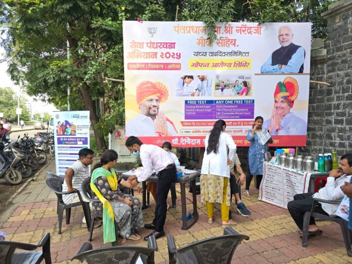 पंतप्रधान नरेंद्र मोदी यांच्या वाढदिवसानिमित्त पिंपरी चिंचवड शहरात भारतीय जनता पक्षाच्या वतीने सेवा पंधरवडा अभियान राबविण्यात येत आहे या सेवा पंधरवडा अभियानांतर्गत विविध सामाजिक उपक्रम राबविण्यात येत आहेत याचाच एक भाग म्हणून रहाटणी परिसरातील भाजपाचे युवा नेते देविदास आप्पा तांबे यांच्या पुढाकाराने भव्य मोफत आरोग्य शिबिराचे आयोजन करण्यात आले या आरोग्य शिबिरा अंतर्गत विविध आरोग्य तपासणी करण्यात आली या आरोग्य शिबिरात रहाटणी परिसरातील नागरिकांचा उत्तम प्रतिसाद पहावयास मिळाला. या शिबिरा अंतर्गत विविध आरोग्य तपासणी मोफत करण्यात आल्या.