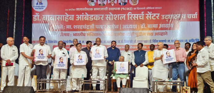 माजी आमदार ऍड. जयदेव गायकवाड यांच्या पुढाकारातून स्थापित भारतरत्न डॉ. बाबासाहेब आंबेडकर सोशल रिसर्च सेंटरचे उद्घाटन शरद पवार यांच्या हस्ते झाले. सत्यशोधक समाजाच्या स्थापना दिनाचे औचित्य साधून बालगंधर्व रंगमंदिरात आयोजित या कार्यक्रमाच्या अध्यक्षस्थानी ज्येष्ठ विचारवंत बाबा आढाव हे होते. प्रसंगी खासदार निलेश लंके, माजी आमदार ज्येष्ठ नेते उल्हास पवार, ज्येष्ठ विचारवंत डॉ. रावसाहेब कसबे, राजकीय अभ्यासक प्रा. डॉ. सुहास पळशीकर, महात्मा फुले समता प्रतिष्ठानच्या सरचिटणीस अ‍ॅड. शारदा वाडेकर, आमदार बापूसाहेब पाठारे, राष्ट्रवादी काँग्रेसचे शहराध्यक्ष प्रशांत जगताप, संयोजक ॲड. जयदेव गायकवाड, ज्येष्ठ पत्रकार अरुण खोरे, माजी आमदार लक्ष्मण माने, प्रा. डॉ. प्रकाश पवार, डॉ. नितीश नवसागरे, विजय जाधव आदी उपस्थित होते. यावेळी ‘भारतीय संविधान: संसदीय लोकशाहीपुढील आव्हाने’ या विषयावर झालेल्या परिसंवादात मान्यवरांनी विचार मांडले.
