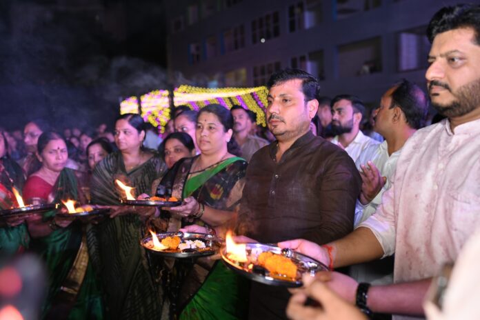 पिंपरी चिंचवड शहरातील सामाजिक कार्यकर्त्या सौ.अनिताताई संदीप काटे यांच्या पुढाकाराने पिंपळे सौदागर येथे भव्य दांडिया महोत्सवाचे आयोजन करण्यात आले. उत्सवाच्या पहिल्या दिवशी भाजपा शहराध्यक्ष शत्रुघ्न (बाप्पू) काटे, संदेश काटे, मनोज ब्राह्मणकर तसेच पिंपळे सौदागरमधील नागरिक मोठ्या संख्येने उपस्थित राहून कार्यक्रमाची शोभा वाढवली.