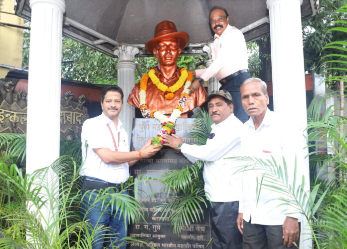 पिंपरी चिंचवड महानगरपालिकेच्या वतीने शहीद भगतसिंग यांच्या जयंतीनिमित्त त्यांच्या दापोडी चौकातील पुतळ्यास उप आयुक्त अण्णा बोदडे यांनी पुष्पहार अर्पण करुन अभिवादन केले त्यावेळी ते बोलत होते.
