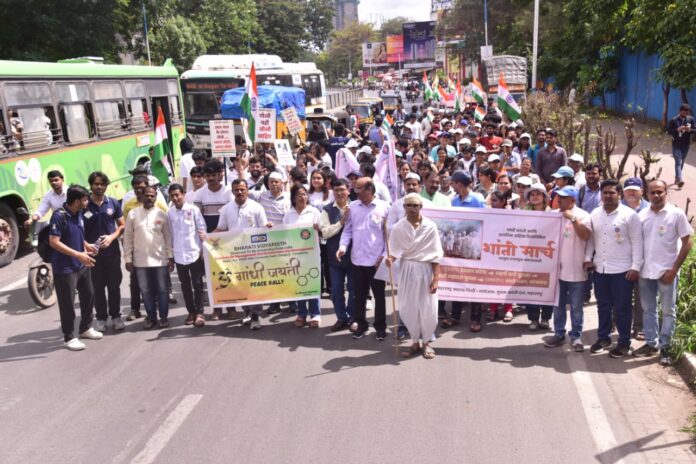 ‘महात्मा गांधी की जय’, ‘गोली नही बोली चाहिए’, ‘भारत जाेडाे, भारत जाेडाे..नफरत छाेडाे’ , ‘भारत माता की जय’ घाेषणा उपस्थितांनी देत रॅली मार्गावरील वातावरण गांधीमय केले. रॅलीच्या समाेर एक लहान मुलगा व ज्येष्ठ नागरिक यांनी गांधीची वेशभूषा परिधान करुन हातात काठी घेऊन सर्वांपुढे चालत मार्गस्थ हाेत रॅलीचे नेतृत्व केले. श्रीमंत गर्जना या ढाेल ताशा पथकाच्या वादनाने रॅली मध्ये रंगत आली. रस्त्याने रॅली जाताना अनेक नागरिक थांबून रॅलीकडे उत्सुकतेने पाहत महात्मा गांधीची आठवण जागृत करत हाेते. भारती विद्यापीठ महाविद्यालय, जाधवर संस्था, जेएसपीएम काॅलेज, शाहू काॅलेजसह माहेर या सामाजिक संस्थेचे ६०० ते ७०० विद्यार्थी माेठया संख्येने रॅलीत सहभागी झाले. सकाळी दहा वाजता सुरु झालेली रॅली उत्साहात दुपारी बारा वाजण्याच्या सुमारास गांधी भवन याठिकाणी पाेहचली. महाराष्ट्र गांधी स्मारक निधीचे अध्यक्ष डॉ. कुमार सप्तर्षी यांनी रॅलीचा समाराेप प्रसंगी उपस्थितांना मार्गदर्शन केले. राष्ट्रपिता महात्मा गांधीची विचारसणीचा, त्यांच्या चारित्र्याचा काळावर प्रभाव कसा हाेता, हे नव्या पिढीला समजणे आवश्यक आहे. त्यांचे विचार हे वैश्विक चिरकालीन असून त्यांच्या विचारांचे स्मरण करणे देखील आवश्यक असल्याचे त्यांनी सांगितले. समाजात शांतता नांदावी असा आग्रह धरणाऱ्या नागरिकांची संख्या अधिक असेल तरच समाजात शांतता नांदते. पुणे शहर कायम दंगामुक्त रहावे आणि सर्वसमाजाने गुण्यागाेविंदाने रहावे काेणताही जातीधर्म वाद उदभवू नये यासाठी आम्ही प्रयत्नशील राहू असा संकल्प यावेळी करण्यात आला. या कार्यक्रमानंतर सर्वांसाठी प्रसाद भोजन ठेवण्यात आले होते.