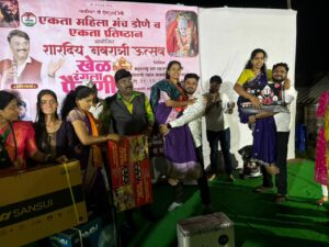 प्रथम क्रमांक- श्रीमती नंदाबाई कारके,द्वितीय क्रमांक -कु तनुजा चंद्रकांत चांदेकर,तृतीय क्रमांक- कु नंदिनी मारुती खराडे,संगीत खुर्ची स्पर्धा