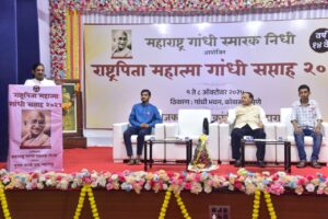 महाराष्ट्र गांधी स्मारक निधी तर्फे ” राष्ट्रपिता महात्मा गांधी सप्ताहाचे” आयोजन गांधी भवन कोथरूड याठिकाणी करण्यात आले आहे. यामध्ये” सत्य असत्याशी मन केले ग्वाही  “या विषयावर लेखक आणि मराठी विषयाचे प्राध्यापक अभिजित देशपांडे यांनी मार्गदर्शन केले. याप्रसंगी डॉ.शिवाजीराव कदम, महाराष्ट्र गांधी स्मारक निधी  चे अध्यक्ष डॉ. कुमार सप्तर्षी, सचिव अन्वर राजन ,तेजस भालेराव, चिन्मय कदम उपस्थित होते.