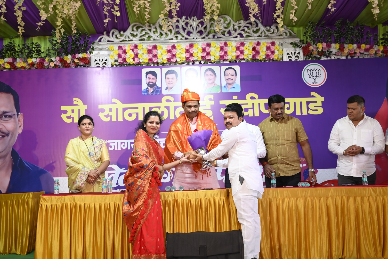 यावेळी तानाजी बारणे, अभिषेक बारणे व आमदार शंकर जगताप यांनी त्यांच्या कार्याचे व खुमासदार वकृत्व शैलीचे कौतुक करत येत्या काळात सोनालीताई गाडे आपण पिंपरी चिंचवड महापालिकेत नगरसेविका म्हणून प्रभावी कामगिरी कराल असा विश्वास व्यक्त करत विजेत्यांना शुभेच्छा दिल्या. या वेळी प्रभाग क्रमांक २३ मधील अनेक नागरिक व हजारोंच्या संख्येने महिला भगिनी उपस्थित होत्या.